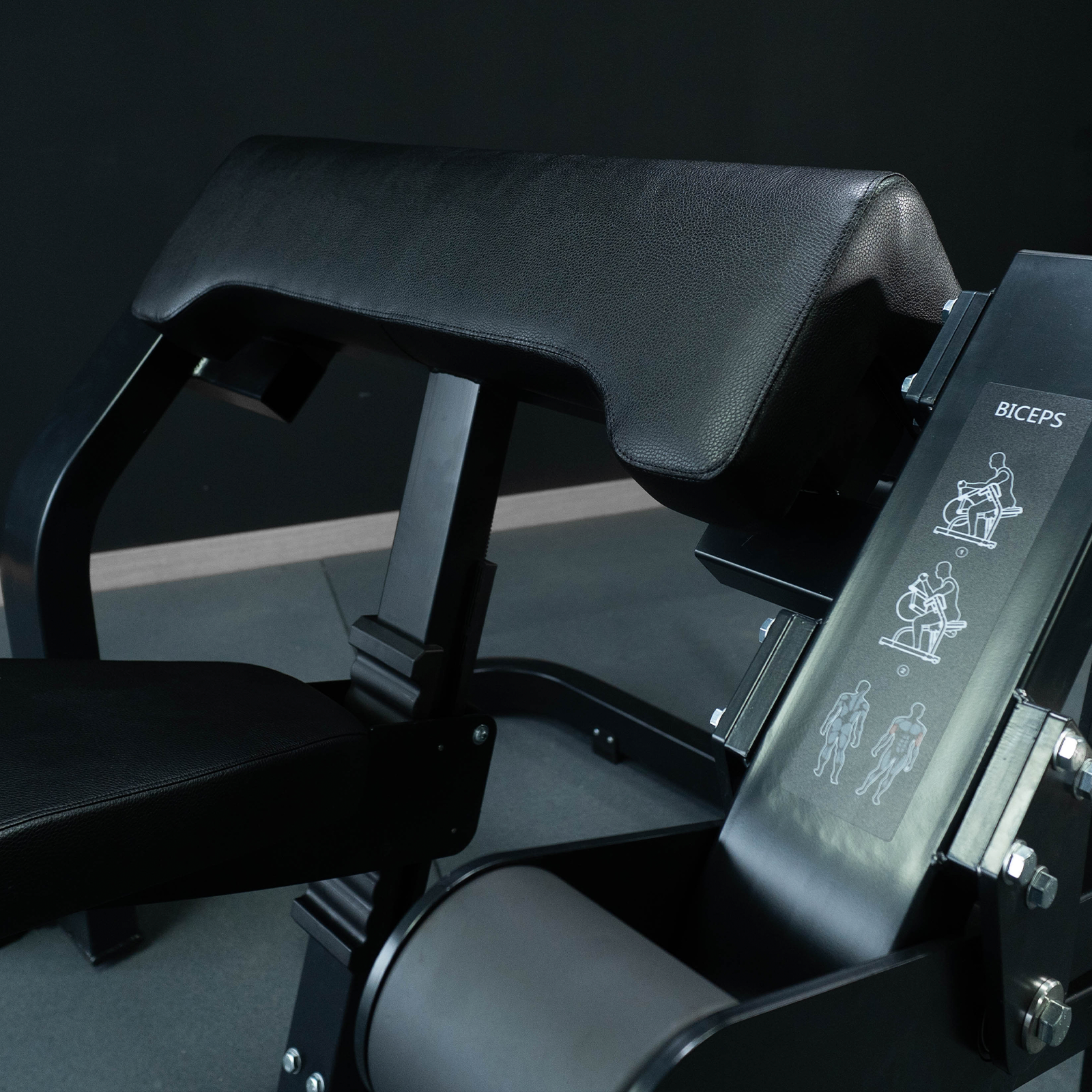 - Hebelsystem: Sorgt für eine sanfte und kontrollierte Bewegung während der Übung, gewährleistet eine präzise Ausführung des Bizepscurls und minimiert das Verletzungsrisiko.