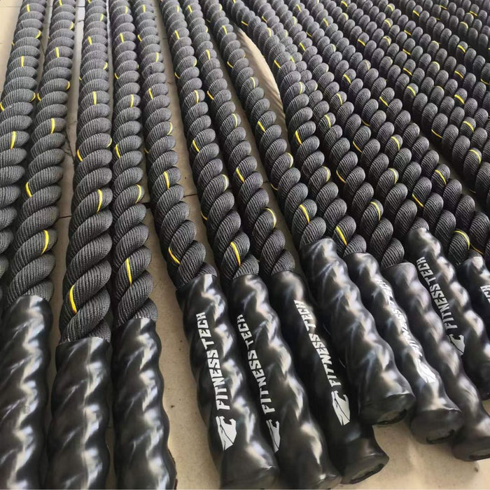 Funktionale Trainingsseile oder Crossfit-Seile. Ebestehen aus Poly-Schnur haltbar mit thermisch kontrahierten Enden für besseren Grip. Außerdem sind sie schwarz, um zu helfen, die Ansammlung von Schmutz im Laufe der Zeit zu verbergen.
