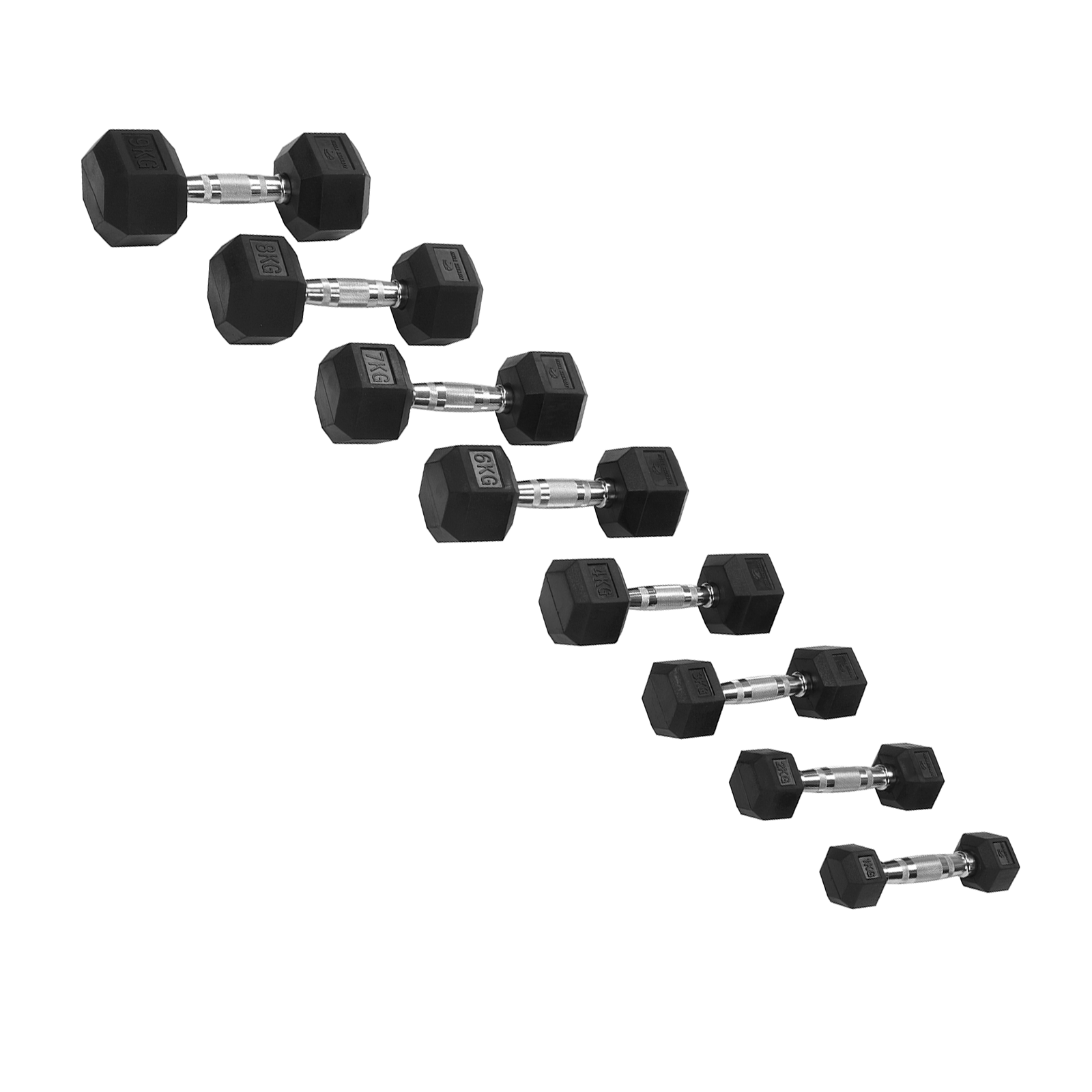 "Spiel von 2 sechseckigen Hanteln, erhältlich in verschiedenen Gewichten, damit du sie an dein Niveau anpassen kannst. Du kannst eine große Vielfalt an Übungen machen."