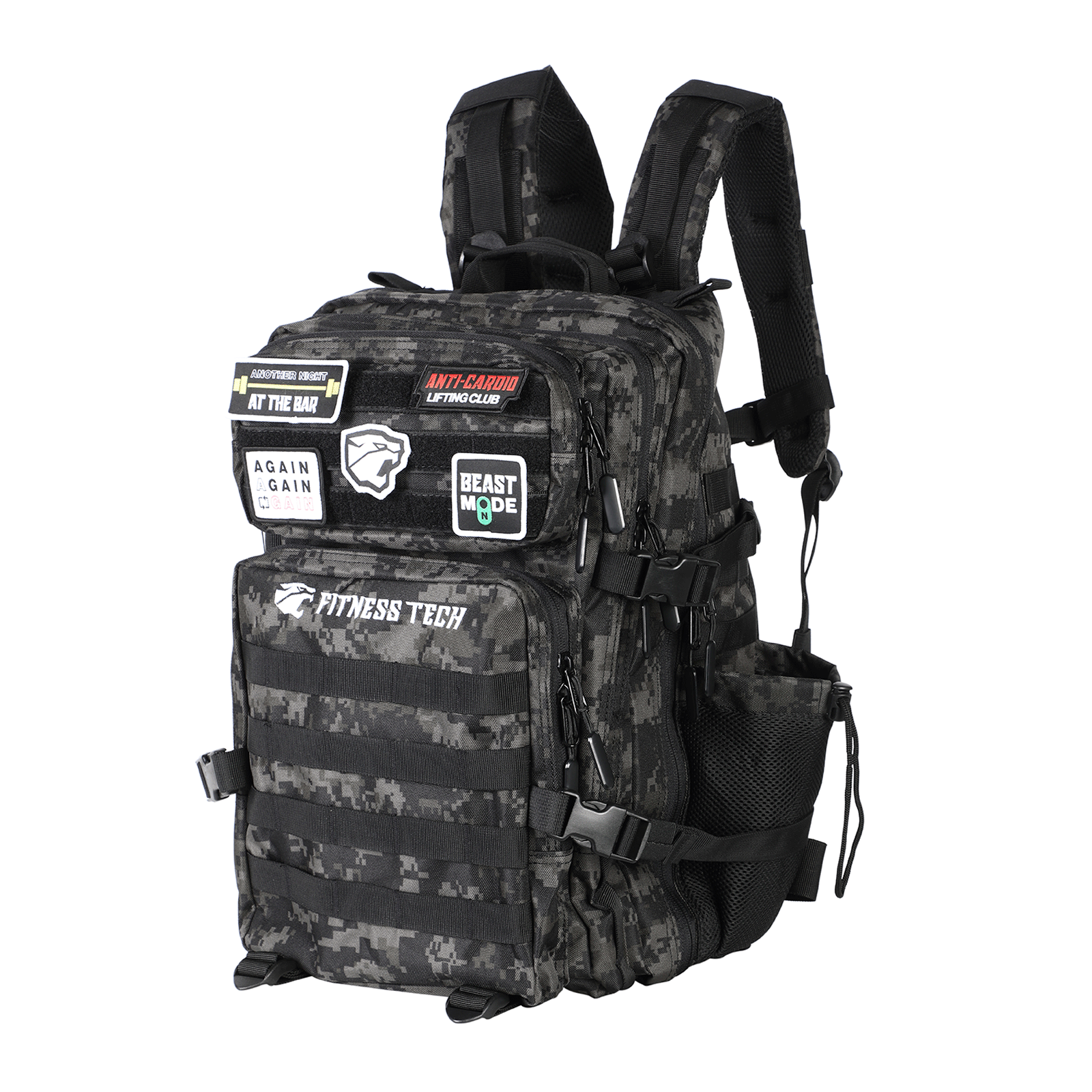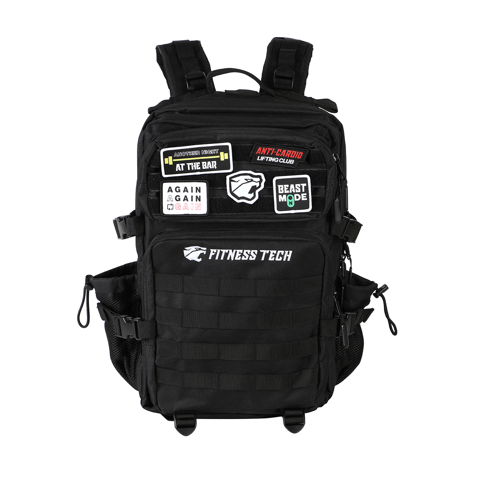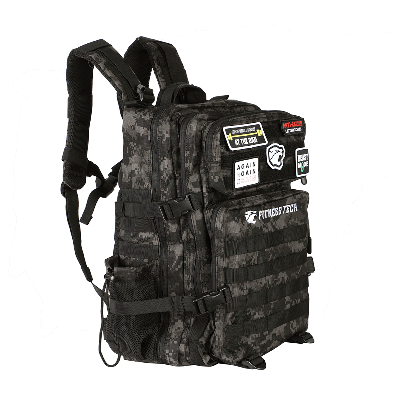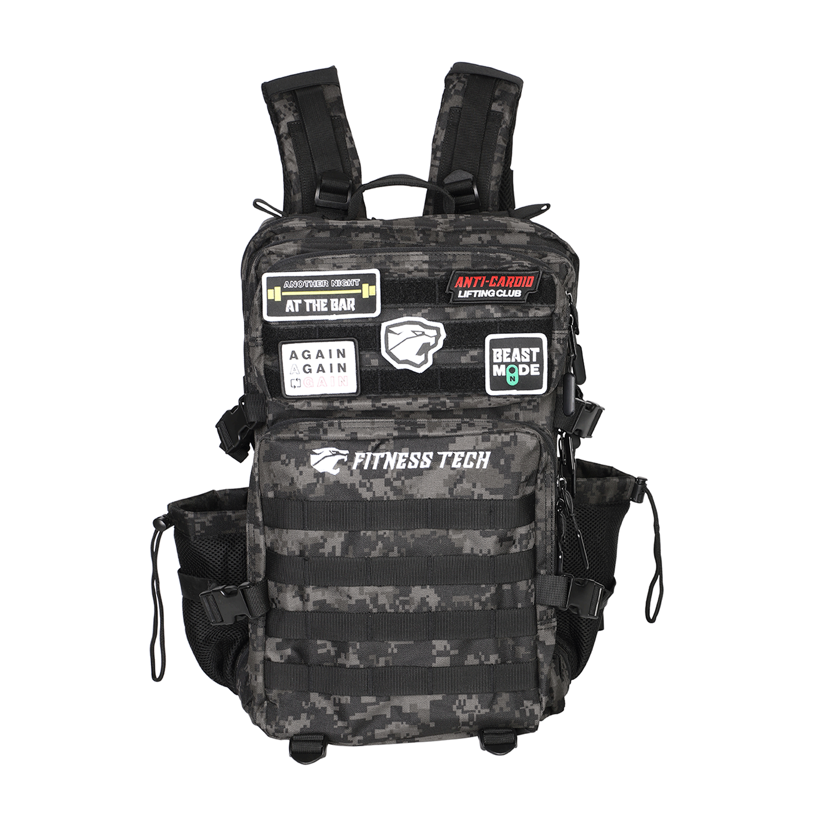Entdecke unseren exklusiven Rucksack, der Funktionalität, Stil und einzigartige Personalisierung kombiniert. Dieses Modell beinhaltet Flaschenhalter und 5 exklusive Patches, die vom Team von Fitness Tech entworfen wurden und die du nach deinem Stil anbringen kannst, um einen einzigartigen und personalisierten Touch zu bieten. Die Rucksäcke sind in drei vielseitigen Farben erhältlich: Erde, Schwarz und Camouflage, die sich jeder Gelegenheit und Persönlichkeit anpassen.