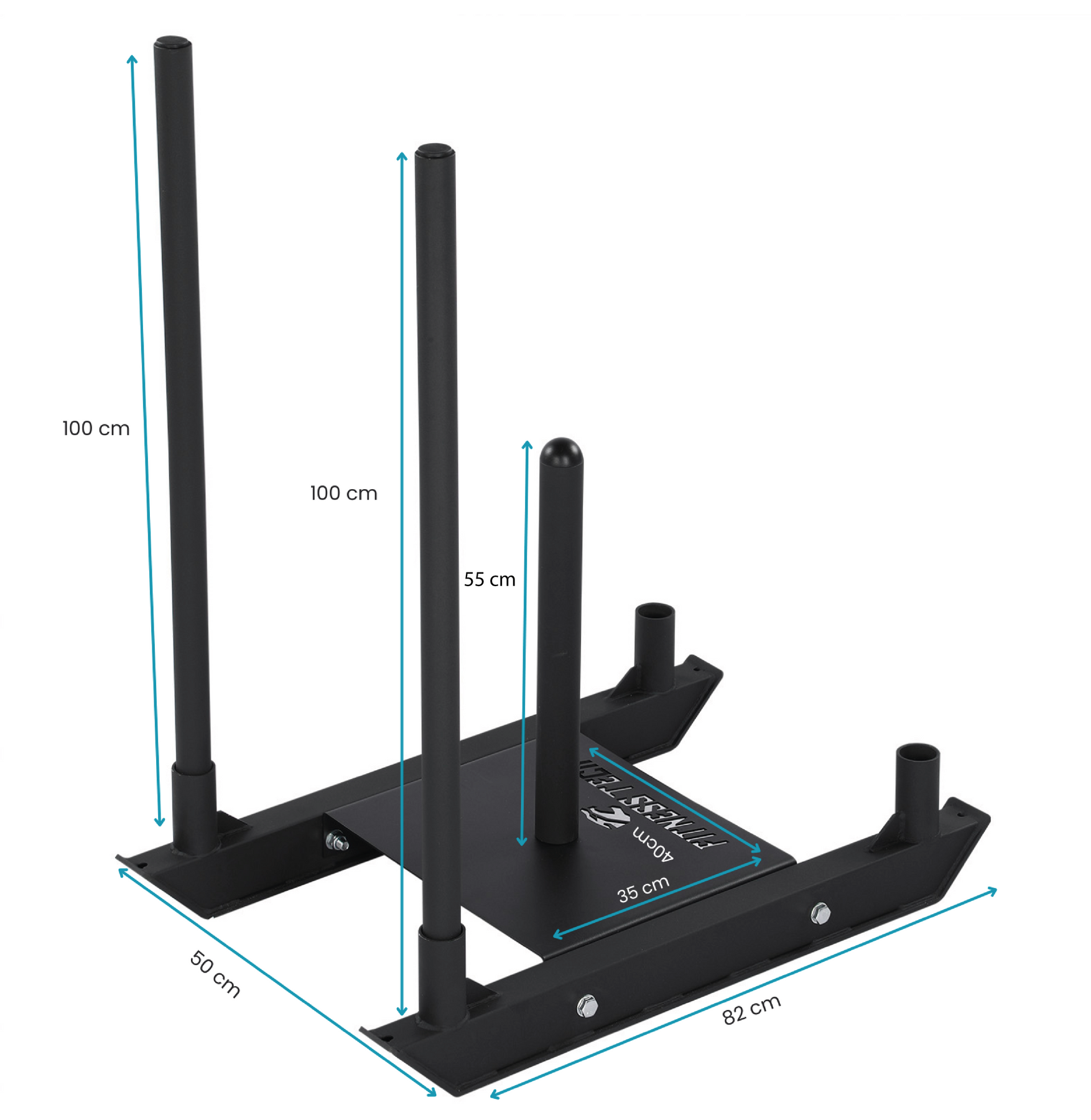 Schlitten zum Ziehen oder Schleppen, der dank seines Designs und seiner Handhabung sowohl von Fachleuten als auch von Personen ohne viel Vorbereitung verwendet werden kann. Die hochwertige Stahlstruktur des Schlitten ist robust und langlebig und verfügt über eine zentrale Halterung, um Gewichte hinzuzufügen und das Gewicht nach Bedarf zu erhöhen. Außerdem kann man mit oder ohne zusätzliche Last ziehen oder schieben, was es zu einem vielseitigen Gerät für all deine Bedürfnisse macht.