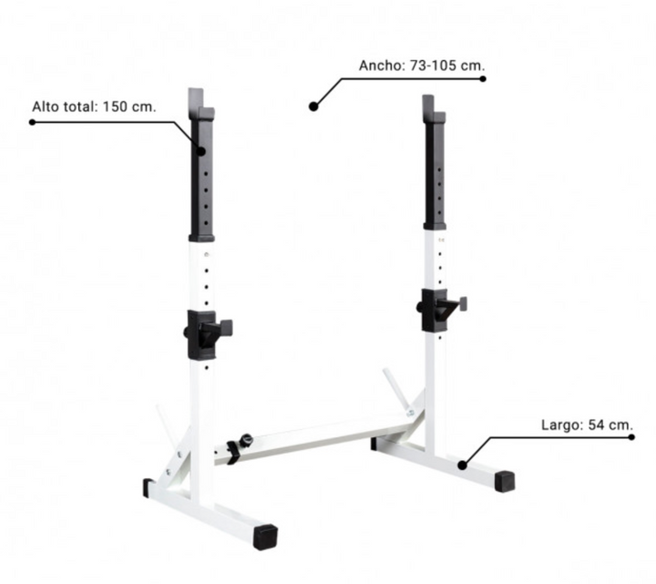 Höhen- und breitenverstellbarer Multifunktionsstütz, hergestellt aus hochwertigem Stahl, mit robuster Basis zur Gewährleistung der Stabilität und zur Erhöhung der Sicherheit während deines Trainings.