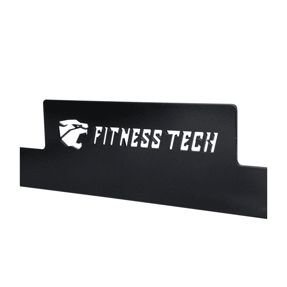 Hergestellt aus robustem Metall mit mattschwarzer Oberfläche, trägt sie das Lasergravierte Fitness Tech-Logo, das eine professionelle und langlebige Optik verleiht. Das Design ist darauf ausgelegt, sich an die Standardmaße der Matten im Katalog anzupassen und Modelle mit einer Breite von bis zu 50 cm sicher und ordentlich aufzuhängen.